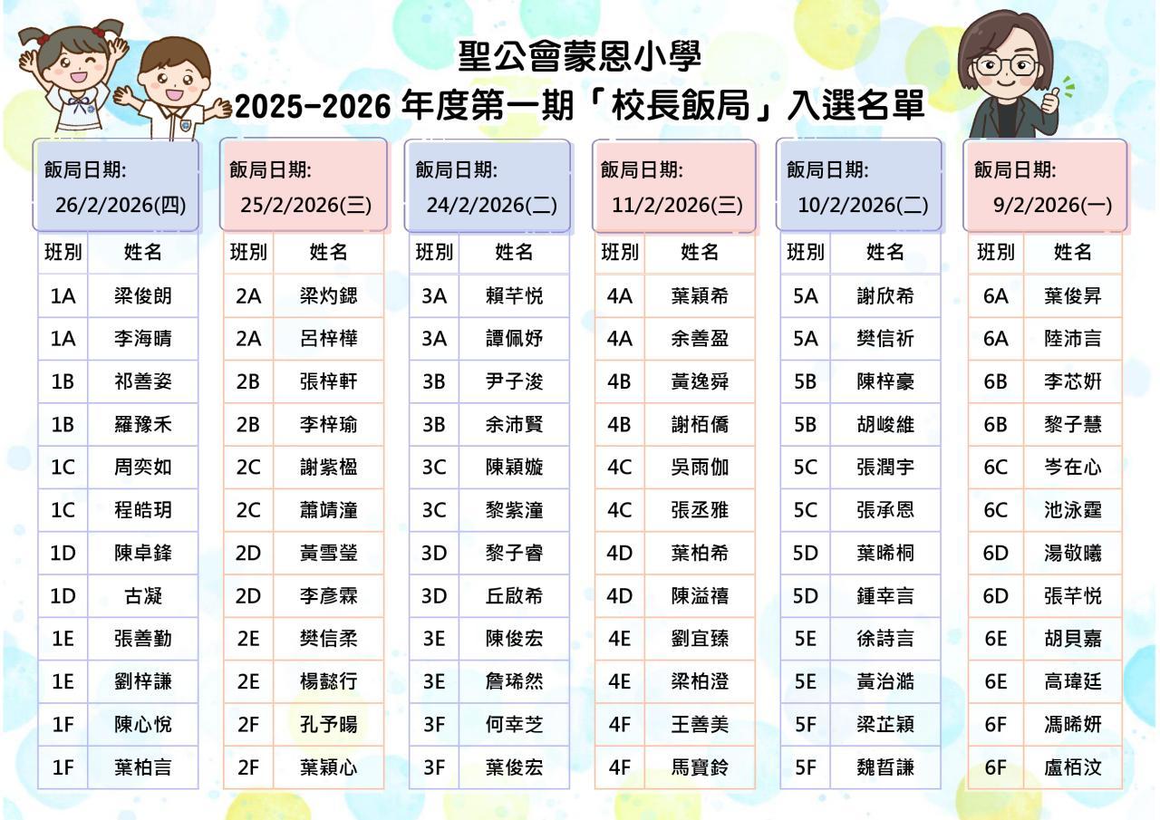 六年級 09-2-2026(一) 三年級 24-2-2026(二)